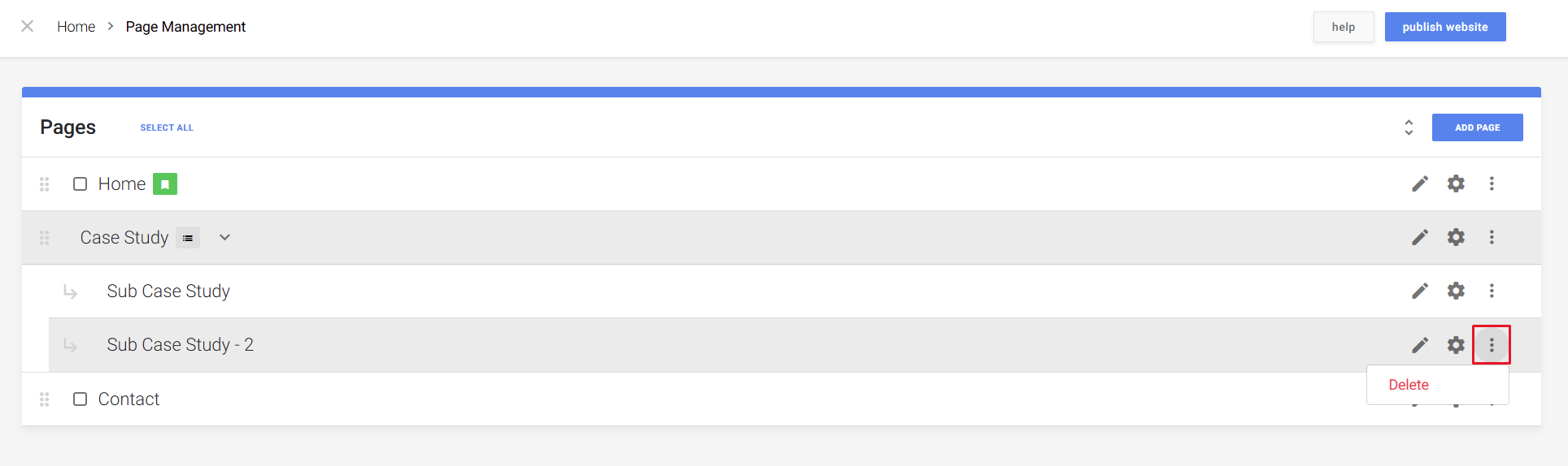 Submenu pages can also be deleted like normal pages using the options icon. When clicking "Delete Page" and confirming it, the page will be deleted just like a normal page!