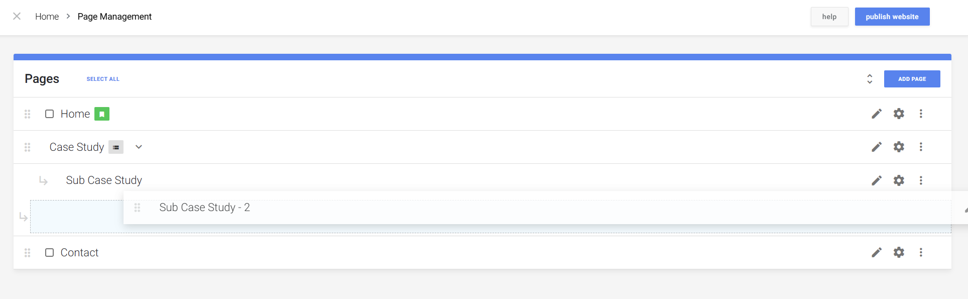 You can create a Submenu by simply dragging a page underneath another page, make sure the arrow icon shows up, this will indicate that the page will be a subpage.