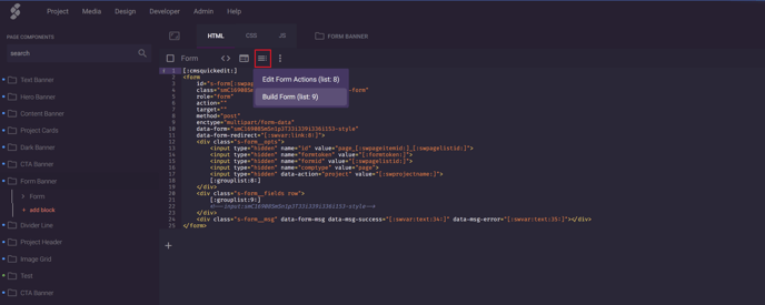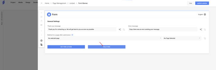 Let's go to a page with a form. To edit our form, click on the pencil icon. We'll then navigate to "Build Form"