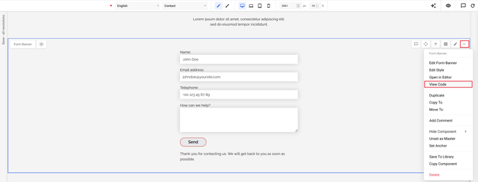 To upgrade an existing form component, we need to navigate to the Code View by clicking on the 3 dots > View Code