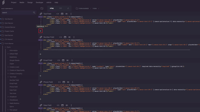 In this overview, you'll see all the blocks that you can already add to your form. We can add new blocks by clicking on the "+" button.