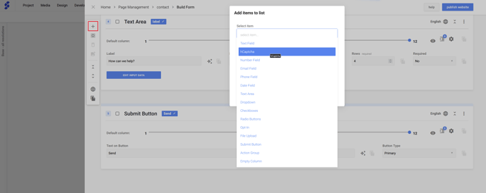 In our form, we can now add our new hCaptcha field with the "+" button.